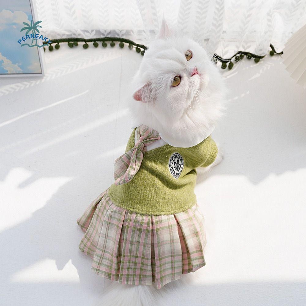 Kawaii Pet JK Plaid Skirt Comfortable Design Knitted Cat Clothes College Style Small Medium Size Dog Dress Chihuahua
