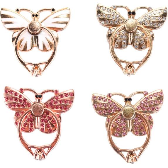 4Pcs Butterfly Cell Phone Ring Stand Holder Colorful Cute Pattern Painted Rotating Metal Buckle Tablet Finger Ring Kickstand for All Phones Tablets