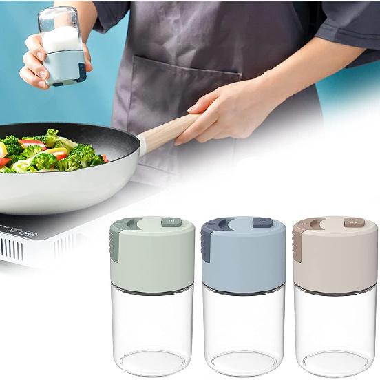 Metering Salt Shaker, Glass Metered Salt Dispenser, Press Type Quantitative Salt Glass Seasoning Bottle, Can Spice Salt Cumin Powder Pepper Shakers