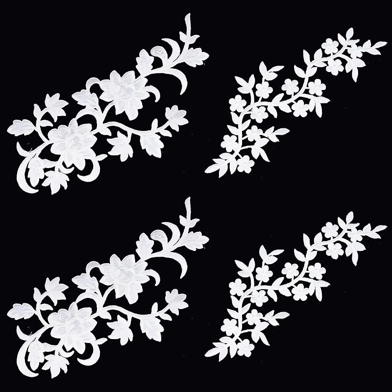 2 Styles Embroidery Applique: package includes 4pcs white cloth flower embroidery appliques in 2 styles--9.5" x 4.3" and 12.7" x 4.8"