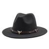 Zylinderhut Frühling und Herbst Jazzhut Hut mit großer Krempe Stierkopf Gürtel Accessoires Filzhut Tide