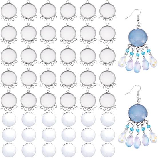 UNICRAFTALE 30Sets Flat Round Tray Pendants Cabochon Stainless Steel Pendant Cabochons Blank Bezel Pendants with 5 Hole with 30pcs Glass Cabochons