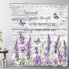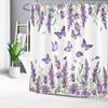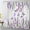 Purple Floral Shower Curtain Purple Lavender and Butterfly on White Shower Curtain for Bathroom, Rustic Flower Plant Shower Curtain Set Durable