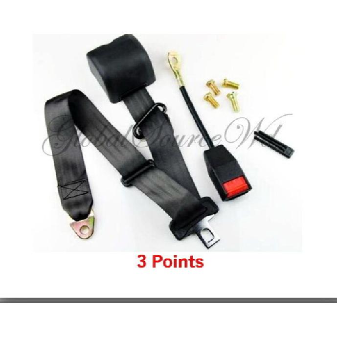 1 Kit Universal Strap Retractable & Adjustable Seat Belt Black 3 Point