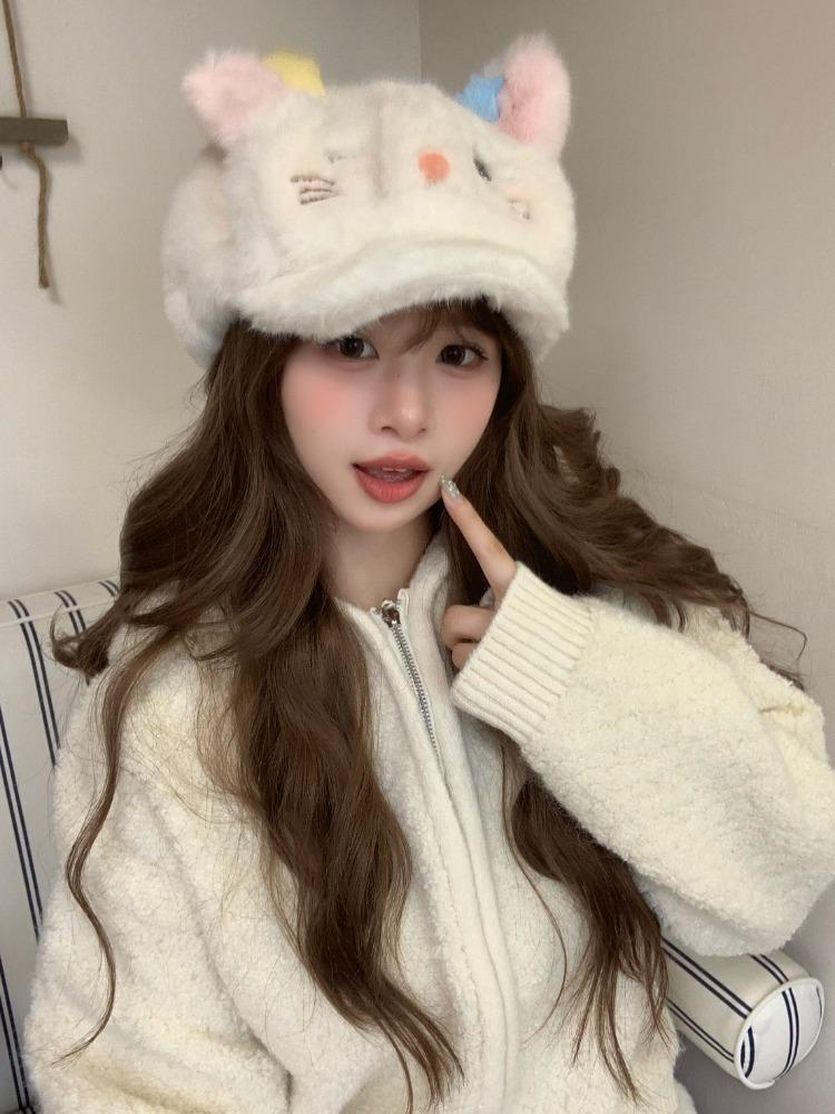2025 new cute kitten plush hat women's season plush to keep warm and cold, showing the face small ear protector Lei Feng hat