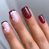 24Pcs Christmas Press on Nails Square French Tip Fake Nails Silver Glitter Nail Design Full Cover False Nails Snowflake Glue on Nails Cute Acrylic