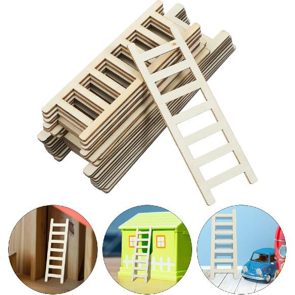 Alasum Miniature Wooden Ladder Set - Tiny Dollhouse Accessories for Diy Craft Projects, Suitable for Mini Landscape Decoration