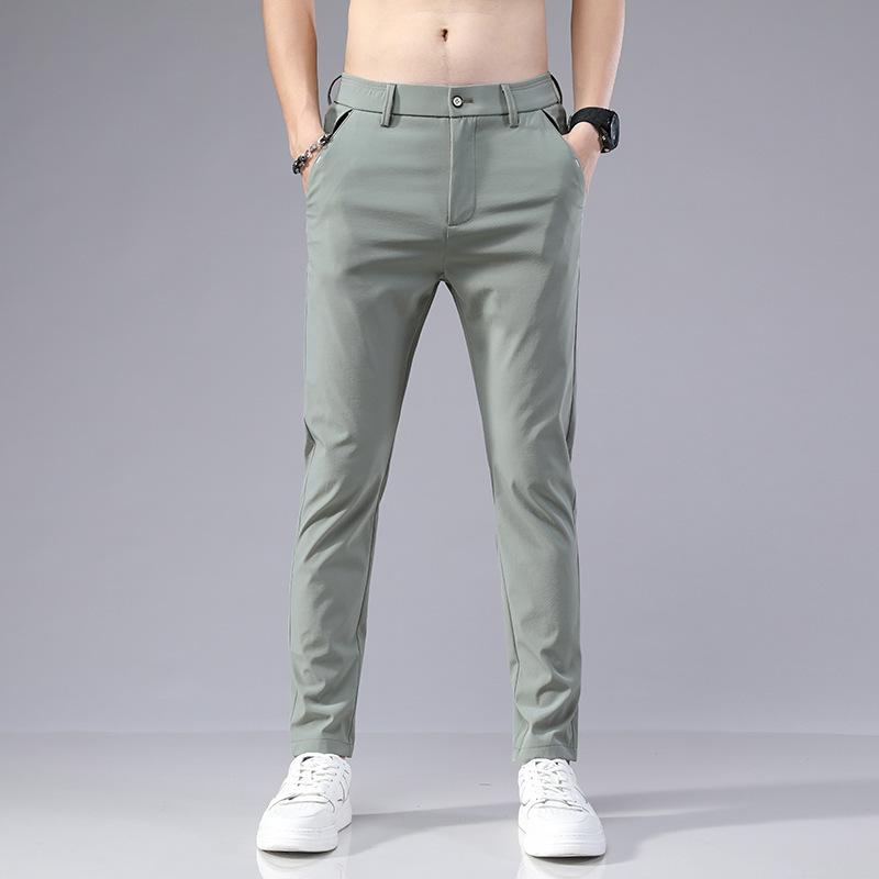 Summer thin elastic waist ice silk pants men's new trend versatile slim straight men's casual trousers