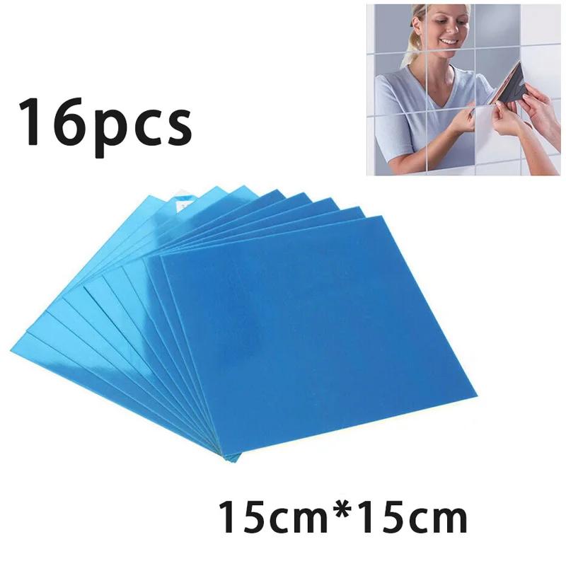 16 Stück Spiegelaufkleber Selbstklebend 15CM Quadratische Spiegelglasfliese Wandaufkleber Abziehbild Zuhause Wohnzimmer Badezimmer Dekoration