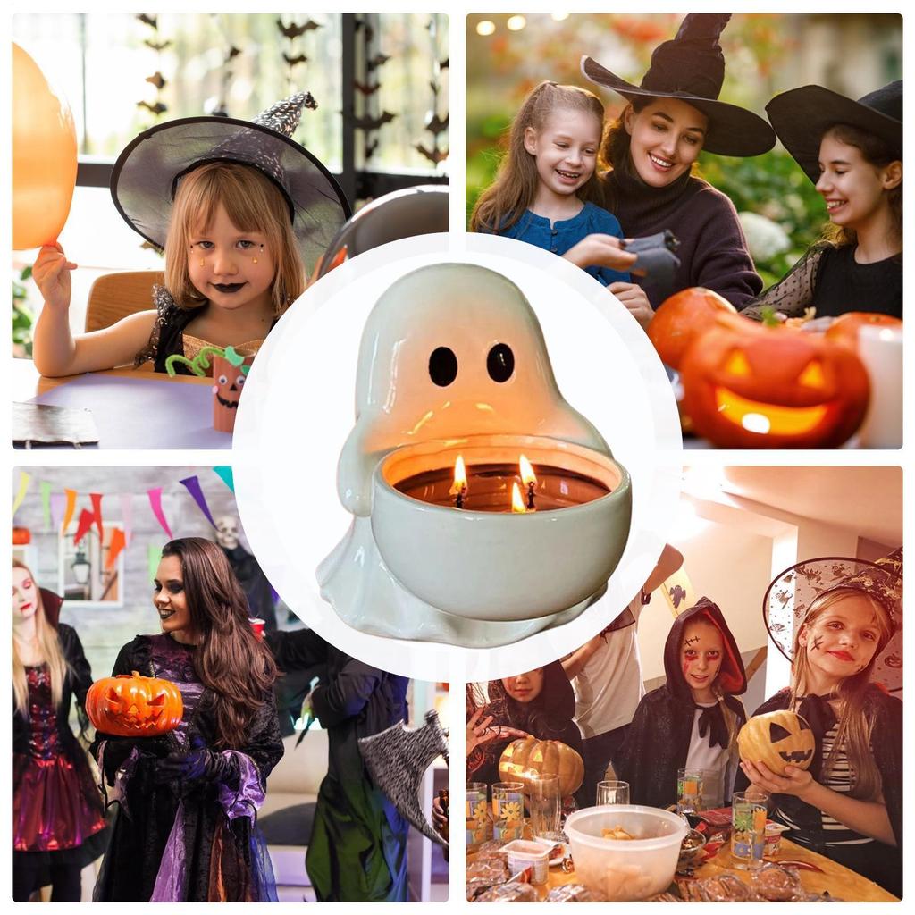 Halloween Candle Holder Ghost Figurine Candle Holder Desk Decor Resin Cute Guardians Ghost Statue Aromatherapy Candlestick