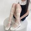 Sommer Lolita Damen Socken Süße Dreilagige Rüschen Spitze Netz Strümpfe für Damen Dünnes Netz Atmungsaktiv Hoher Schaft Schleifen Socken