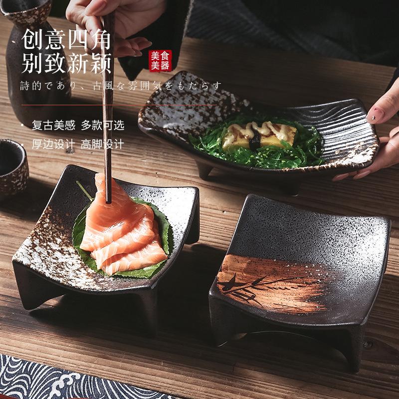 Japanese Sashimi Sea Urchin Plate Commercial Japanese Sushi Plate Hot Pot Yakiniku Square Plate Black Dish Plate