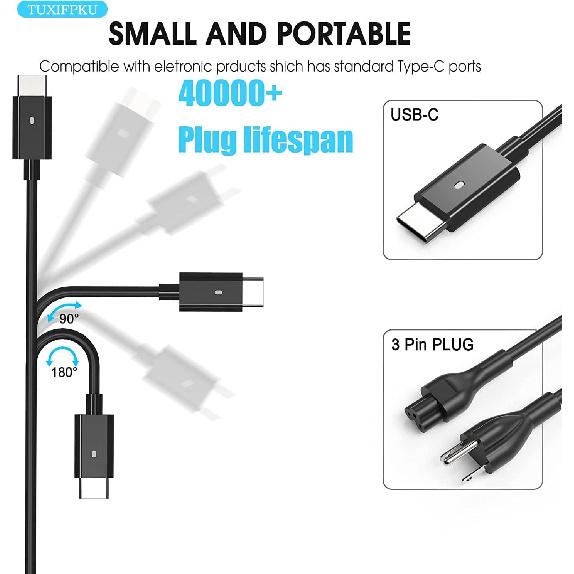 TUXIFPKU New Slim Charger Compatible with Dell laptop Specifications:Input: 100-240V, 50-60Hz~1.8A,Output: 5V-3A 9V-3A 15V-3A 20V-2.25A 20V-3.25A.Power: 65W Compatible with 60W 45W Laptop,Connector Type: Type C, USB C Port