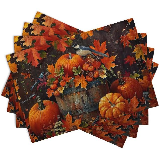 The autumn dining mat is printed with beautiful and innovative pumpkin and maple leaves patterns