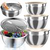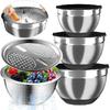 Mixing Bowls with Airtight Lids, Stainless Steel Mixing Bowl Set with 3 Metal Nesting Bowls, Colander & Grater, Non-Slip Bottoms, Size 1.5, 2.5, 5
