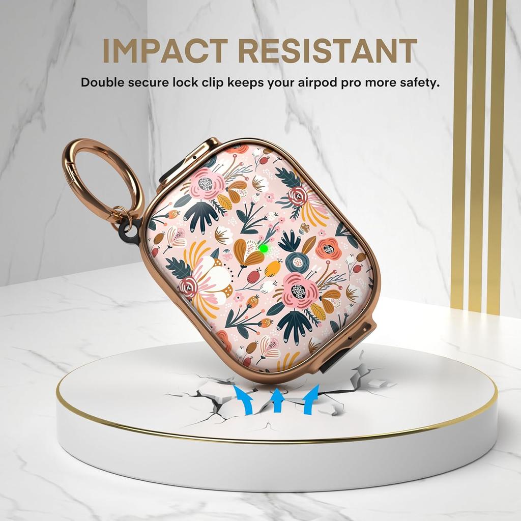 Maxjoy for AirPods Pro 3rd Generation Case with Lock, Flower AirPods Pro 3 Case Lock Protective Hard Cute AirPod Pro 3 Cover for Women Men with