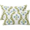 Set of 2 Embroidered Decorative Throw Pillow Covers Couch Square Pillowcases Cushion for Bedroom Sofa Farmhouse Decor 18x18 Inch (Blue Floral)