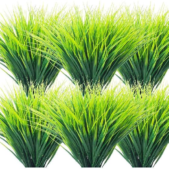20 Bundles Artificial Outdoor Plants, Fake Wheat Grass Greenery Shrubs UV Resistant Faux Plastic Plants Garden Porch Window Box Décor (Grass)
