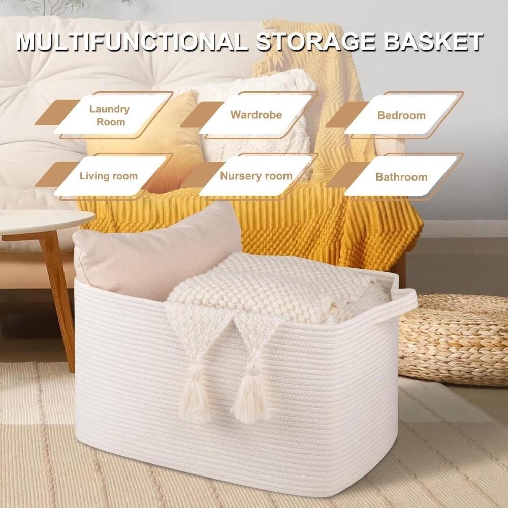 NEW 15x10x9 Inch Cotton Rope Basket Large Capacity 22L Laundry Basket Storage Woven Storage Bin for Living Room
