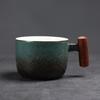 Espressotasse, kreativer Holzgriff, Latte-Tasse, Retro-Tasse aus grober Keramik, mittelgroß und antike Nachmittagsteetasse aus Keramik