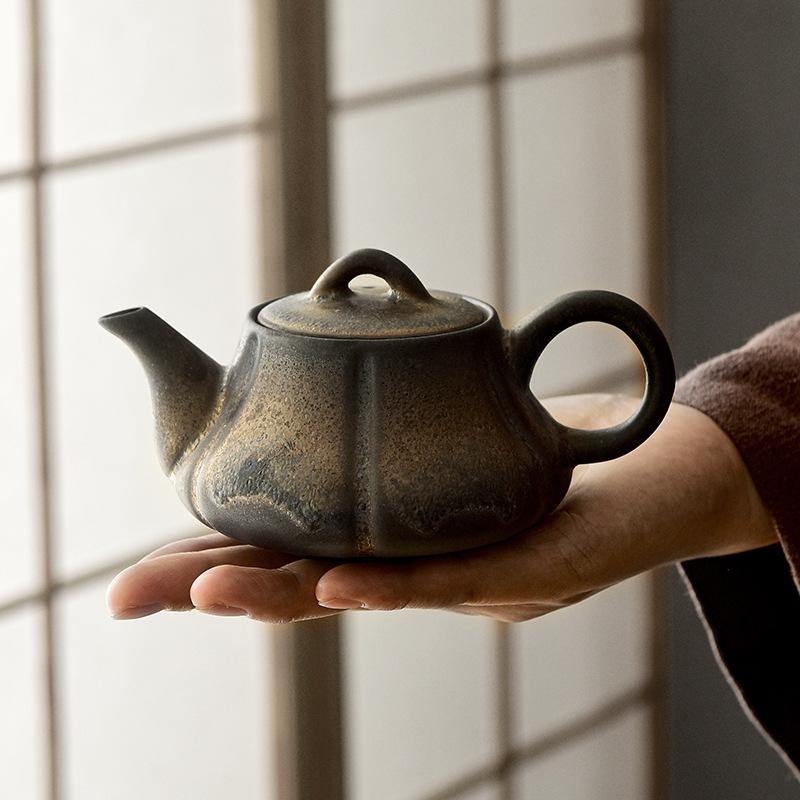 Japanische Retro Grobkeramik Teekanne Einzelkanne Ofenbrand Haushalt Groß Vergoldet Rostglasur Keramik Kung Fu Teeset Teebereiter