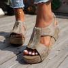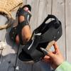 Damen Nietbesetzte Peep-Toe Reißverschluss Keilabsatz Plateau Sandalen