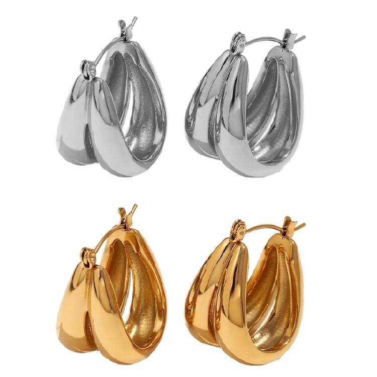 Modern Double U Shaped Loop Earrings In Sturdy Titaniums Steel Materials 18K Gold Coated Waterproof Jewelry Accessory