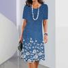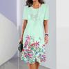 Sommerkleider mit kurzen Ärmeln, edles Damenkleid, lockerer A-Linienrock, Farbkonflikt-Druck, Damenkleidung, lässiger Pullover mit rundem Kragen