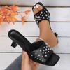 Damen Nietenschuhe Zehenfrei High Heel Pantoletten, Mode Übergröße Schuhe