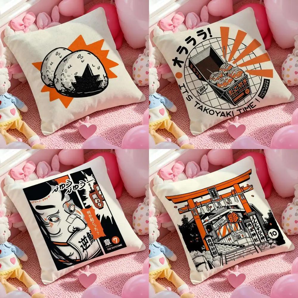 Takoyaki Japanese Food Cushion Cover Pattern Printed Pillowcase for Living Room Sofa Cushion Cover & Bedroom Decor