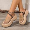 Stilvolle schwarze Netz-Fischnetz Damen-Freizeit-Plateausandalen | Dick gepolsterte Sohle, bequeme Schlupfschuhe mit runder Zehenpartie für den Ganzjahreseinsatz