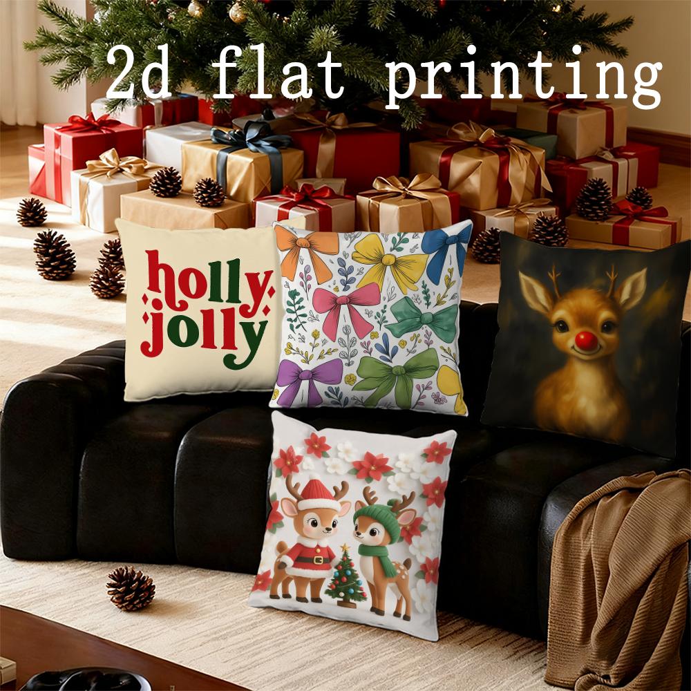 Home Decor Christmas-themed Jolly Deer & Bow Pillow Covers Pattern Cushion Cover Suitable for Sofa Bedroom Car Pillow Cover