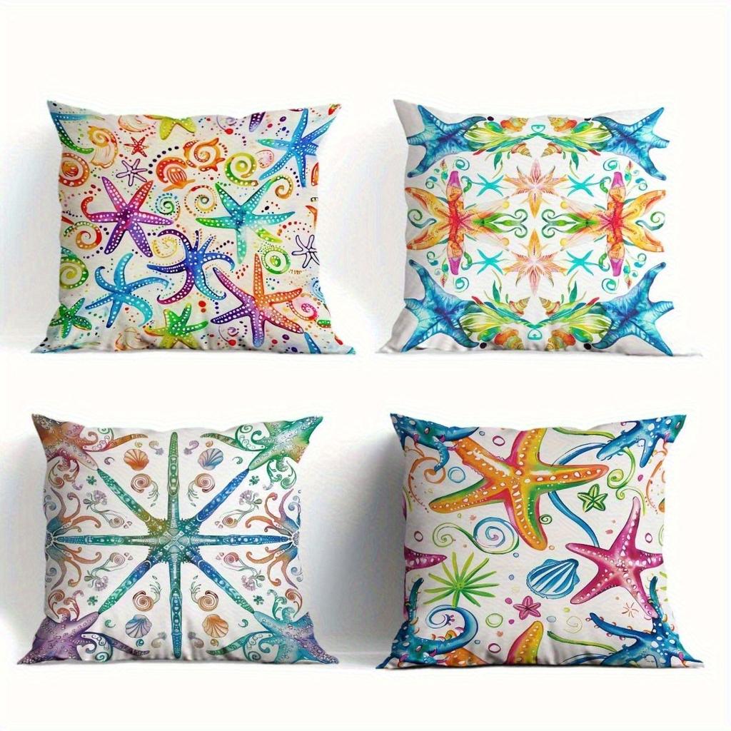 Home Decor Colorful Seastar & Shells Patterned Pillowcase Pattern Cushion Cover Suitable for Sofa Bedroom Car Pillow Cover