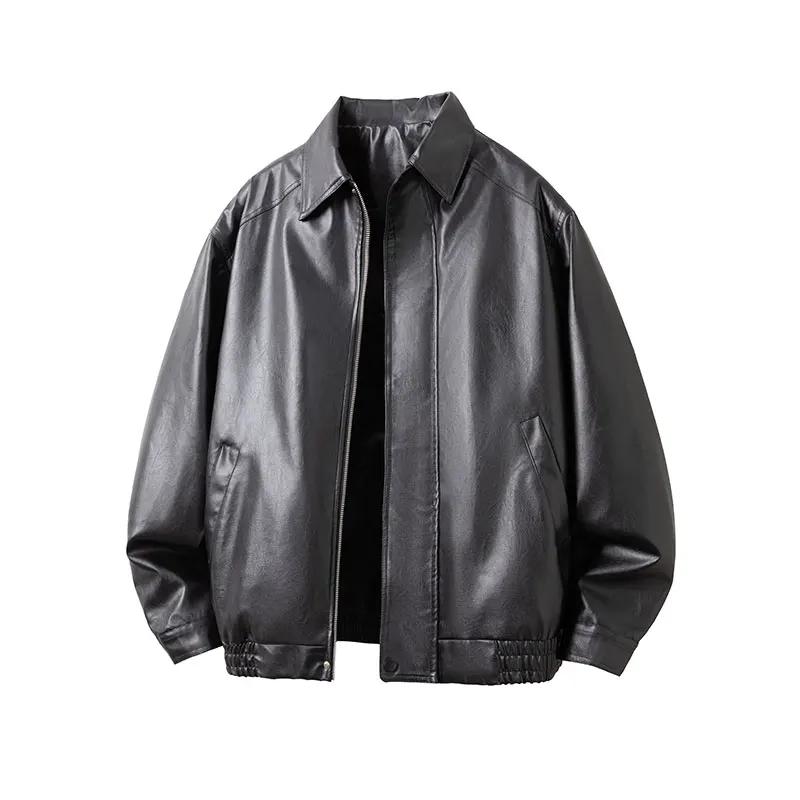 2026 Herren Coole Motorrad-Lederjacke Herren Retro Schwarze Kaffeejacke Herren Biker PU-Ledermantel Herren Lockerer Kunstledermantel