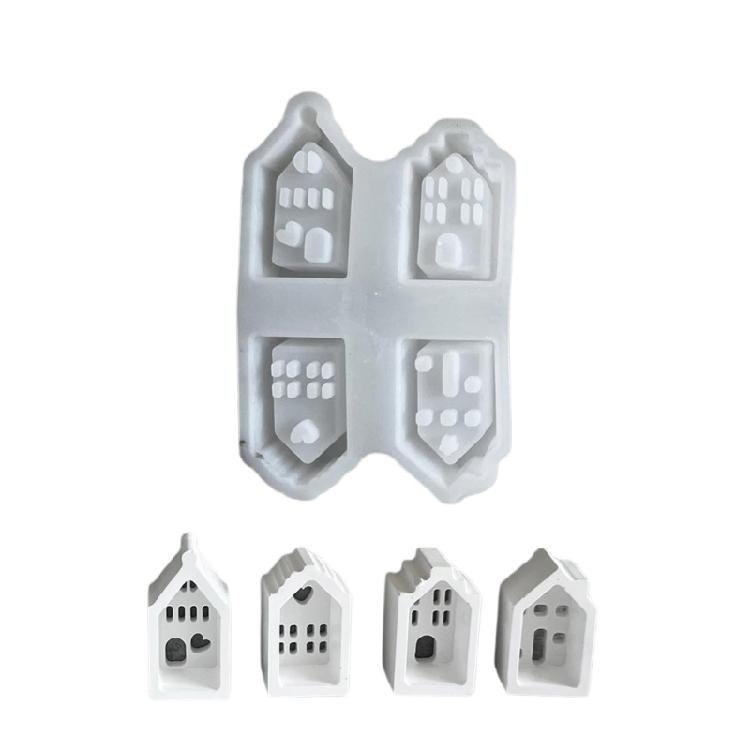 Ornament Mould Flexible Silicone Mold for Office Decoration Hollow House Shaped Desktop Embellishment Making Molds