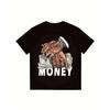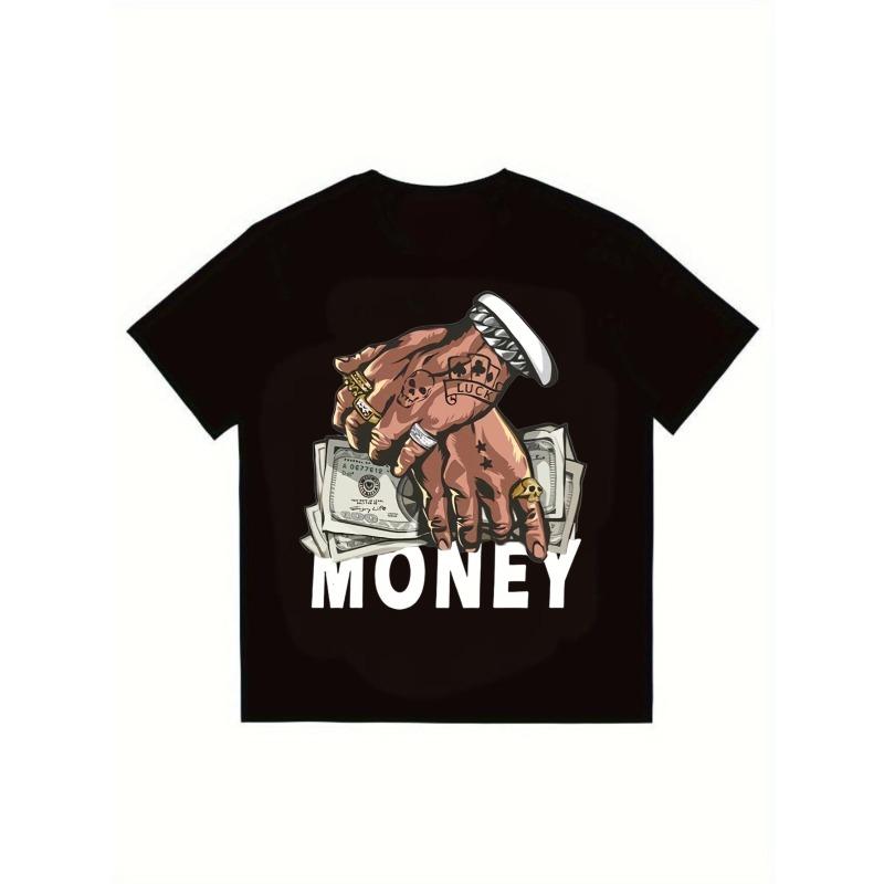 Schwarzes T-Shirt Geld Handabdruck mit Dollarscheinen und Text für Streetwear-Mode