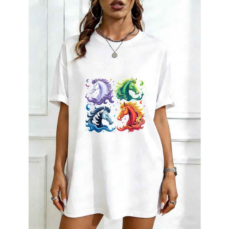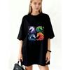 Übergroßes T-Shirt Schwarz Vier Bunte Einhorn-Drucke Für Freizeitkleidung