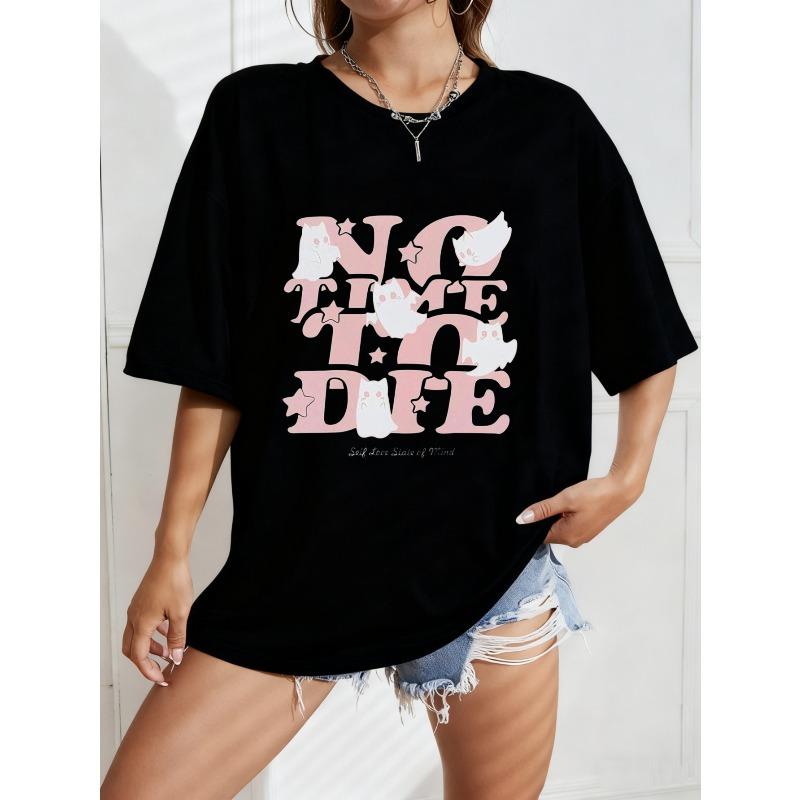 Weißes Oversized-T-Shirt mit pinkem No Time To Die Grafikdruck für Freizeitkleidung und Streetstyle