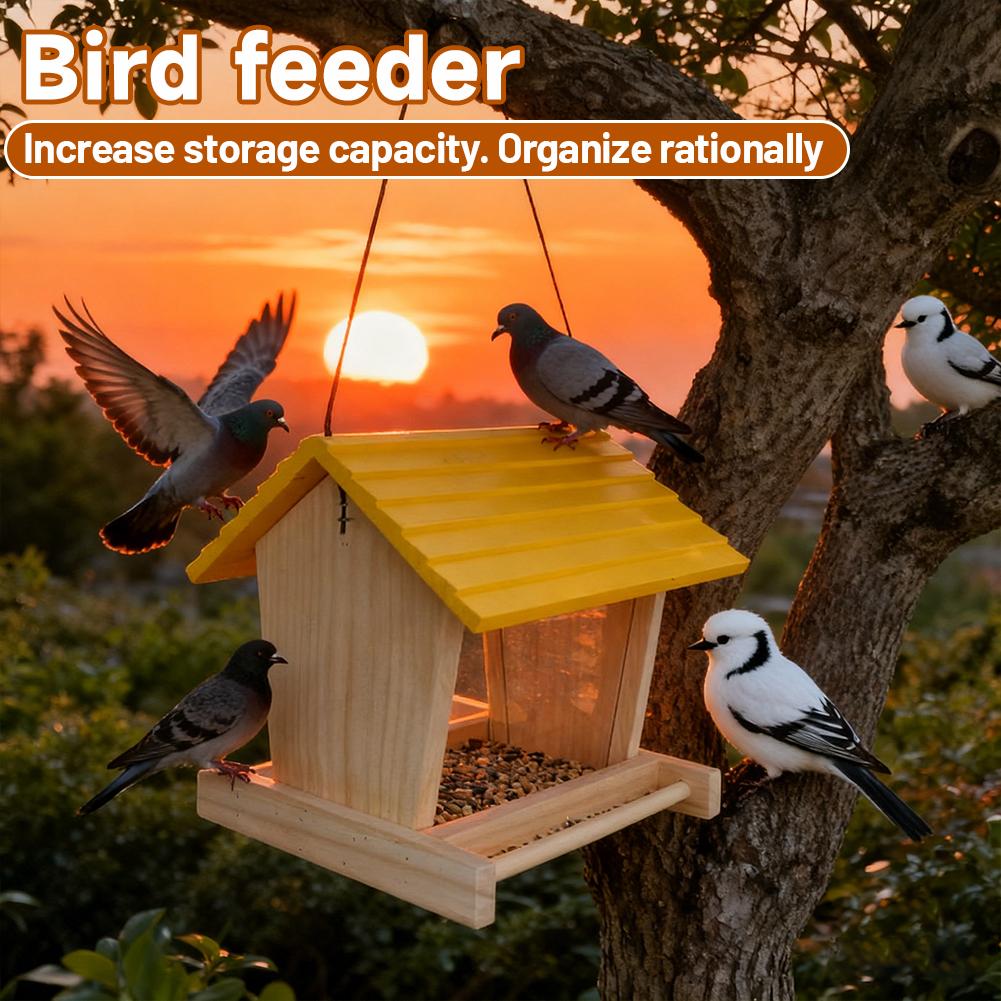 Wooden bird feeder, courtyard villa, balcony hanging rainproof bird feeder, wild feeding to attract birds