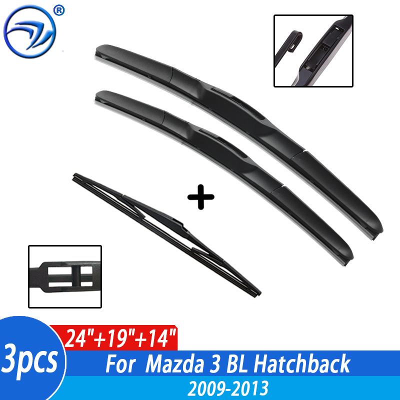 Wiper Front & Rear Wiper Blades Set Kit For Mazda 3 BL Hatchback 2009 2010 2011 2012 2013 Windshield Windscreen Window 24"+19"+1