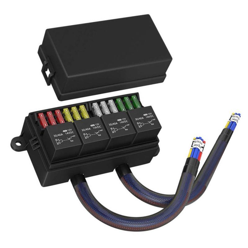 12V Sicherungsrelaisbox mit 4 Relais und 12 ATCATO-Sicherungen Vorverdrahtet mit ABS-Gehäuse für Fahrzeugelektrik