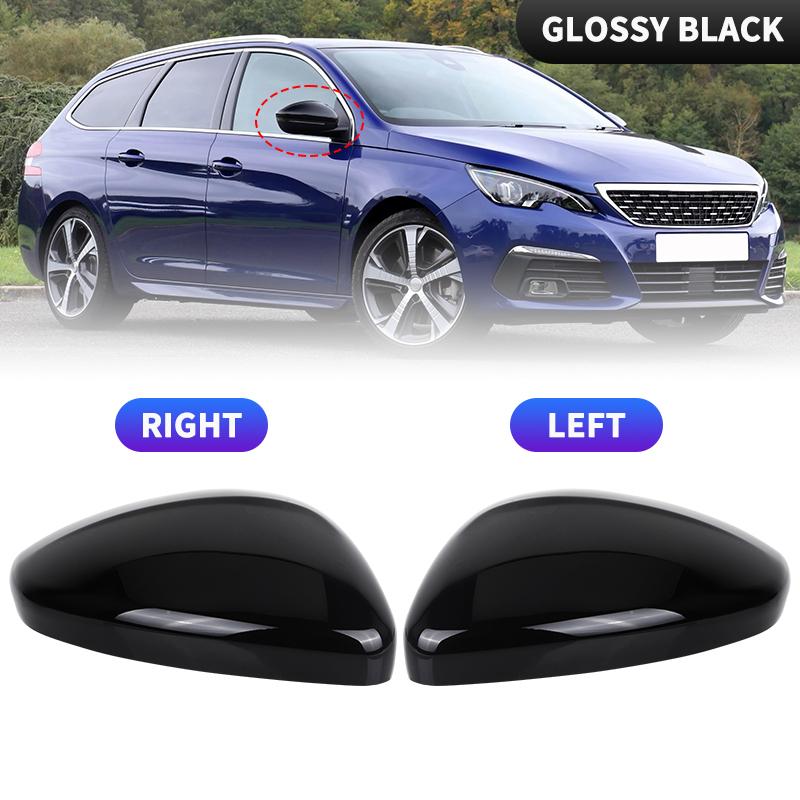 Primed Black/Glossy Black Side Rearview Mirror Cover Shell For Peugeot 308 MK2 2013 2014 2015 2016 2017 2018