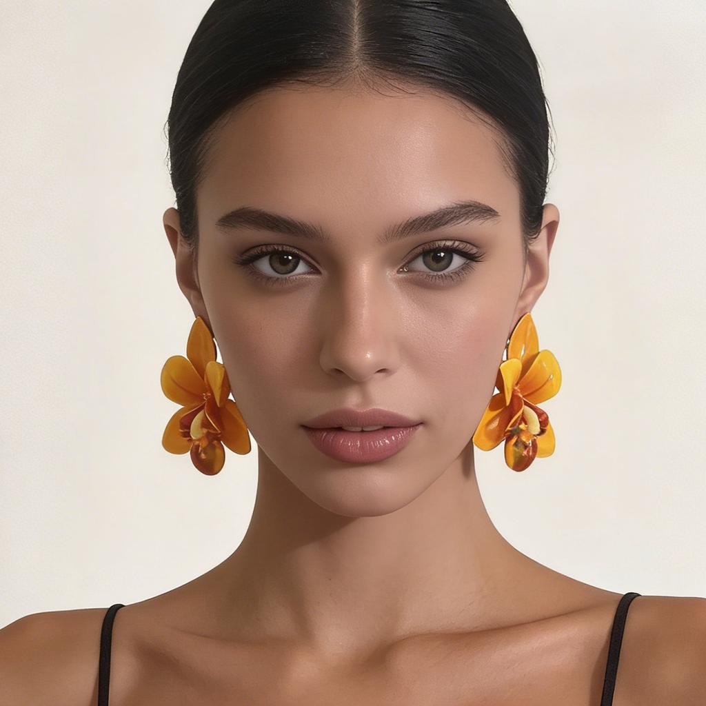 Bohemian exaggerated fashion simple dripping oil unique fabric flower stud earrings versatile vacation women