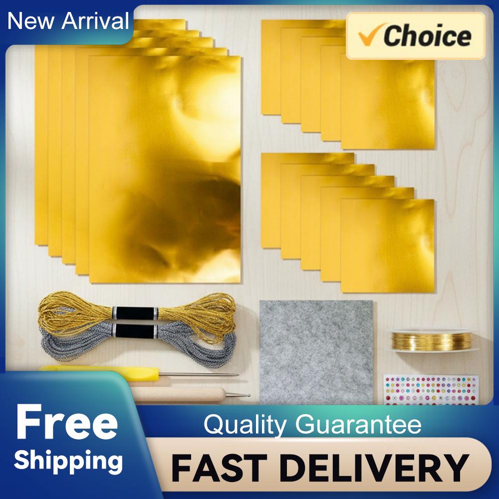 15 Stück Folienblätter mit Schnitzwerkzeugen Ahle Aufkleber Metallfaden Folie Geprägt Bastelset Kunstwerkherstellungs-Set