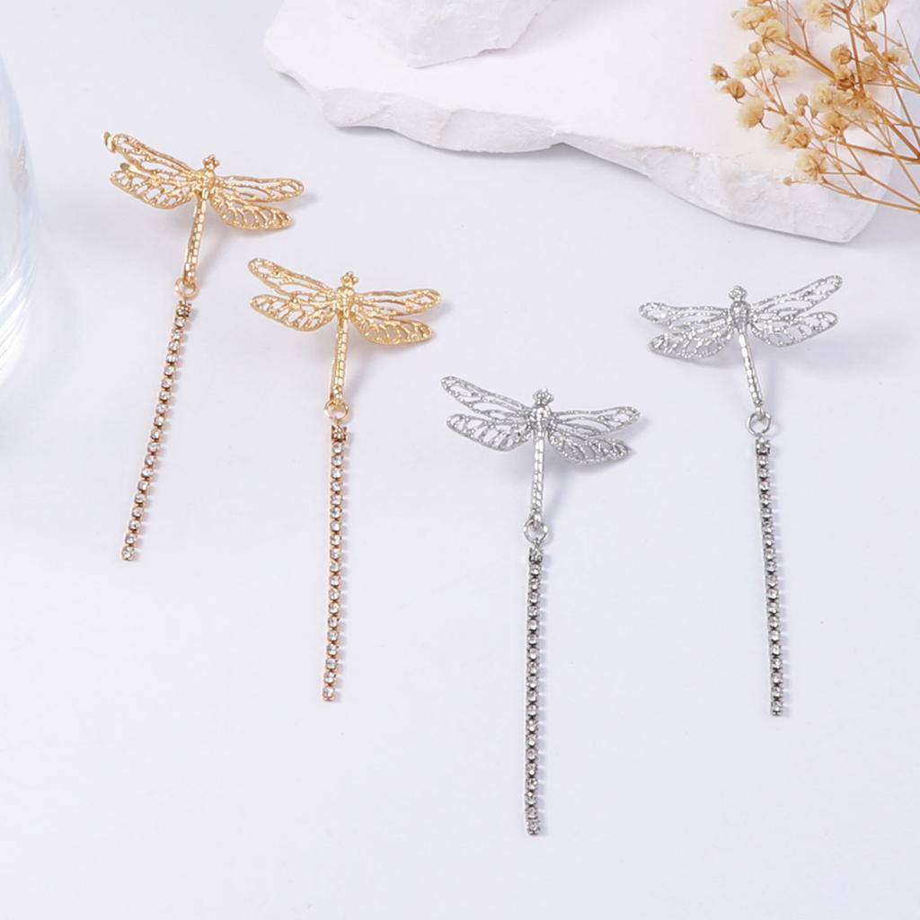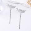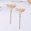 Simple fashion light luxury high-end design gold inlaid zircon long tassel dragonfly animal pendant earrings