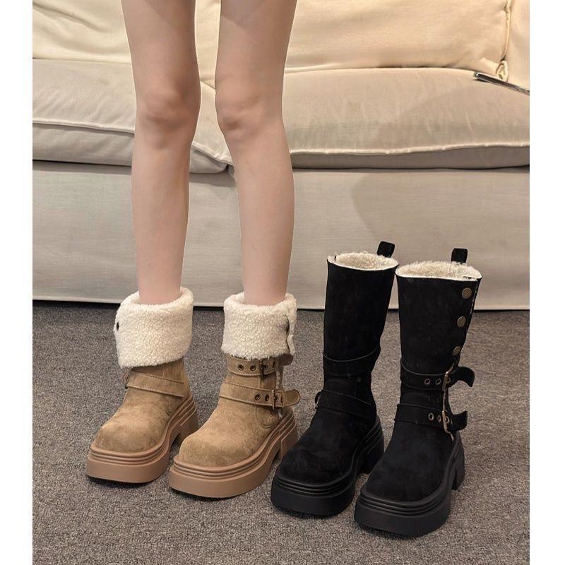 Britisch-Amerikanische Martin-Samt-Schneestiefel mit dicker Sohle für Damen, Retro, Neu, Winter, Hoher Schaft, Erhöhende Martin-Stiefel