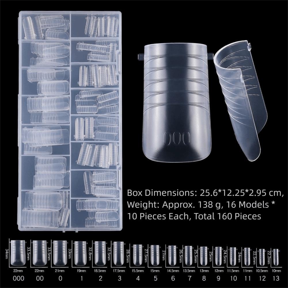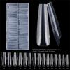 150pcs Coffin Shape Sandwich Nail Forms Natural Clear with Auxiliary Line Double-Sided Fake Nails Clear Extension Almond Shape