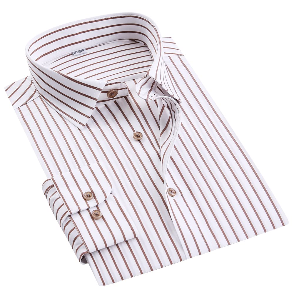 Enshe Men's Long Sleeve Dress Shirt, Slim Fit, Striped, No-Iron, Workwear, All Seasons, Shape Memory, ESA1-817 (Size 39, Brown)