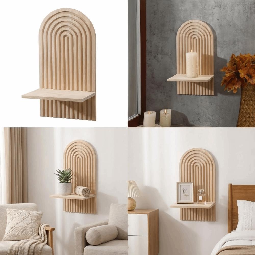 --3D Arch Design: This 3D arched mid century wall candle holder white and natural wood colors, blending vintage charm with modern minimalism. Its design evokes a sense of nature and tranquility, adding rustic warmth to any space.