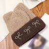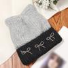 Casual Bowknot Knitted Hat Knitted Cat Ear Beanie Caps Windproof Fiber Winter Hat